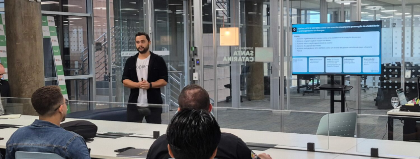 Na última terça-feira, 28 de abril de 2026, o Sapiens Parque realizou, por meio do projeto Sapiens Connect, o 4o Workshop de Cocriação do Plano de Ação do Ecossistema de Inovação. O encontro aconteceu na sala da Fapesc, no Passeio Sapiens, e reuniu presencialmente os atores do ecossistema para a apresentação dos resultados consolidados ao longo dos três encontros anteriores.